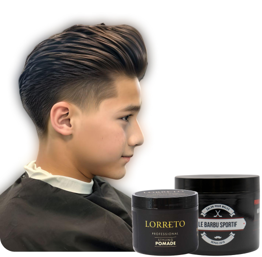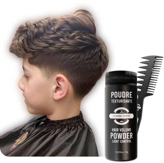 C’est la coupe à la mode chez les ados. C’est une super belle coupe lorsque tu sors du salon de barbier mais le problème c’est que ça reste pas bien beau une fois que tu as pris ta douche. On a testé plusieurs produits et la poudre texturisante est le mieux pour ce genre de coupe. La poudre donne du volume au cheveux. Il y a plusieurs poudres sur le marché mais c’est celle du Barbu Sportif qui est selon nous la meilleur. Elle sent rien, elle tient vraiment bien. Elle part facilement lorsque tu prends une douche.